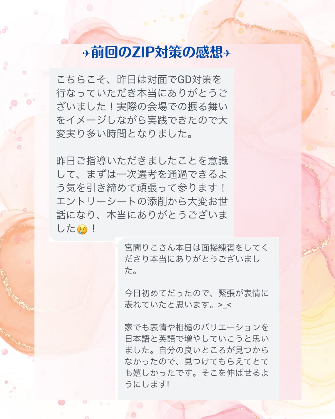 本番さながらの面接対策ができるため、自信を持って面接に臨めるようになります^^